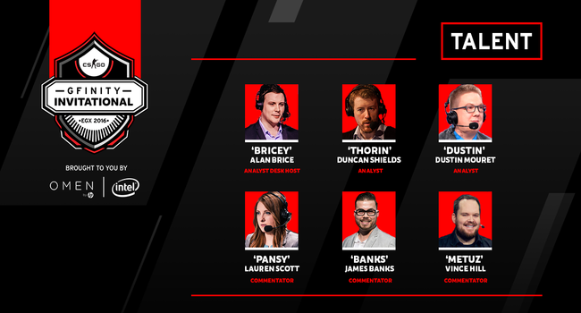 The talent for the Gfinity Invitational has been announced just after the four teams were. As usual, the wonderful Duncan "Thorin" Shields will be attending and joining him will the Dustin Mouret as leading analysts. The overall analyst desk will be hosted by Alan "Bricetacular" Brice, who is a new face on CS:GO broadcasts and is just getting his feet wet in the industry.