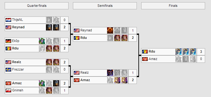 Rdu's 3-0 brings him a fat check of $10,000, leaving half of that to Liquid's Amaz. After going against a slew of tournament favorites and highly ranked names, Rdu's victorious run puts him on top of the GosuRankings, just three points above StrifeCro.