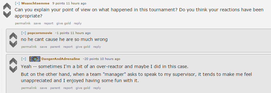 One doesn't have to look far to understand Andersen's decision to abandon his partner at HearthstoneOpen, especially given the fact that between Andersen's two statements, DnA took to himself to post a Reddit AMA thread, since deleted, titled "I'm the asshole that runs HearthstoneOpen.com -- you can ask me anything!" Part of DnA's answers in the thread include: