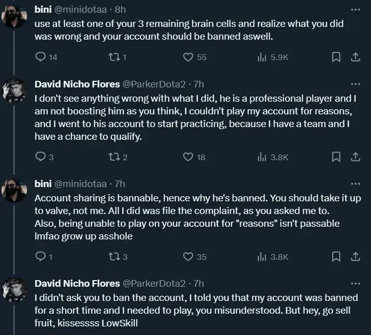 David "Parker" Nicho Flores was spotted a couple of days back playing on StingeR’s account, which might be the reason for the ban. Following the ban from last night, Parker has actually confirmed that he was indeed playing on his teammate’s account. He also mentioned that he did so not to boost StingeR’s account but because he couldn’t play on his own account because “it was banned for a short time.”