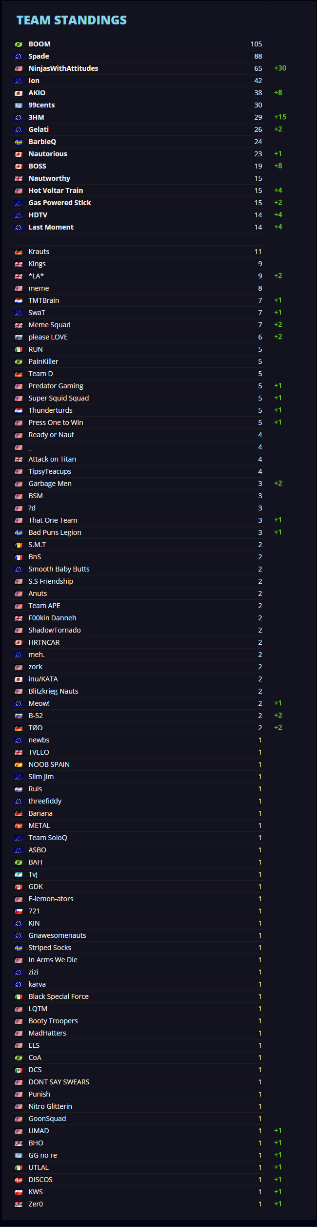 Worth mentioning is that Team BOOM and Spade & His Incredible Team, the two teams currently with the most amount of points did sign up for this qualifier but BOOM unfortunately had to forfeit due to one of their players missing. Spade's team was matched up against Last Moment in the first round and lost. Last Moment gained four points this week, which together with out similiarly ranked teams gaining similar amouint of points raised the cut-off mark to 14 points.