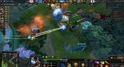 (Click to enlarge) Earthshaker has to blink away to avoid the Storm Hammer; Batrider is about to lasso PL.