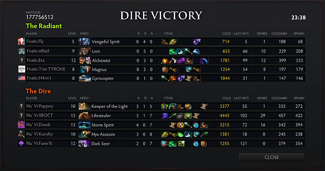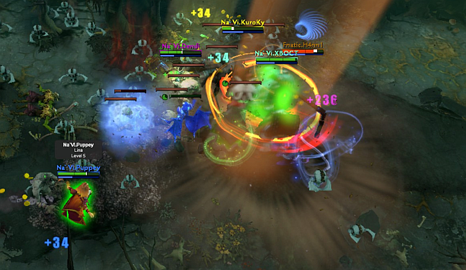 As the game hit the 10th minute mark, Lion had died thrice in the middle lane to an overcommitting Storm. Na`Vi's aggressive warding allowed themselves to position way past Fnatic's tower and forced the Alchemist to join them in fights. However, it was to no avail. Na`Vi's heroes composition are just superior in the mid-game as they wiped Fnatic in front of their base. The kill score was 0-11 by the end of the fight. Na`Vi slowly pushed down all of Fnatic's outer towers before heading into the Rosh pit to secure the Aegis.