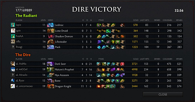 In a four-man gank gone wrong, Rat lost three of their heroes attempting to kill Spectre and that set the motion for aL's snowball. As the game headed towards mid-game, miGGel's Clockwerk started roaming the map to much success, picking up many kills with the help of his teammates. Spectre also joined the fights using his Haunt and picked up a couple of kills while assisting in many. The kills bought him the Diffusal Blade 14 minutes in and aL never looked back. miGGel's Clockwerk was Beyond Godlike at the end of the game.
