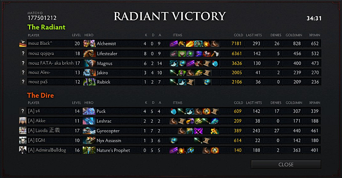 Mousesports was quick to abandon their off-lane after Gyrocopter, Nyx Assassin and Leshrac from Alliance appeared on the top lane. The Lifestealer went into the jungle and Mouz's supports roamed middle to kill s4's Puck. Lifestealer did eventually return to the top lane but Gyrocopter was already level 7 and even with two supports, Mousesports could not go on the Gyrocopter fearing the back-up. Meanwhile, Mousesports' Alchemist was left to free farm on the safe lane and he saved up a Shadow Blade, Midas, and Power Treads in 12 minutes with the help of level two Goblin's Greed.