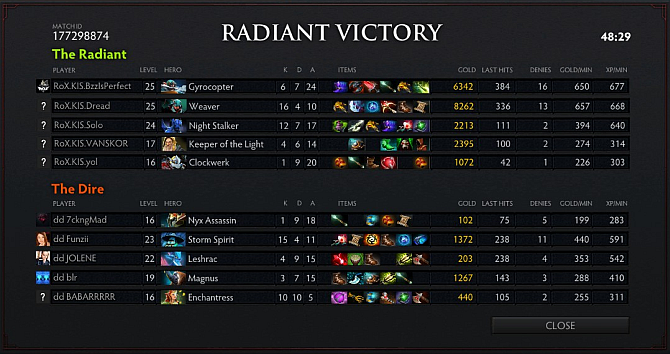 It was the second night which RoX.KIS hit their stride. Despite their poor farm, RoX.KIS showcased their heroes ability to kite just enough for DD.Dota to fall into the bait. They took another big teamfight on the bottom lane and Night Stalker's crazy aggression (which led to death in most cases) baited a lot of teleports and created space for Gyrocopter to farm up a storm.