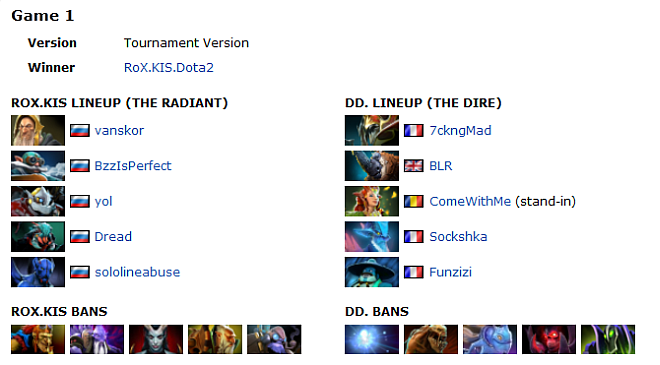 RoX.KIS picked the Night Stalker in game one, a hero that has not seen much light in the current meta-game. The game started out fast with kills coming left, right and centre. Most of the kills went highly in favour for the French as their stand-in, ComeWithMe (Enchantress) successful in roaming around the map. As the first night fell, Night Stalker attempted to put his team's score on the board but ended up as just another casualty due to smart warding by DD.