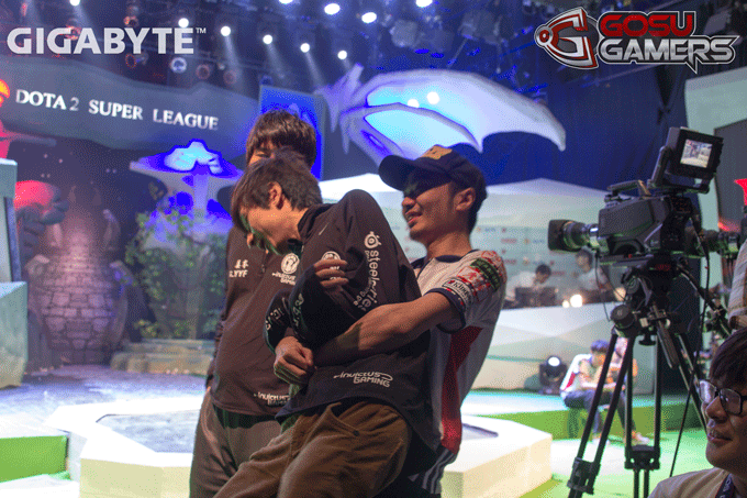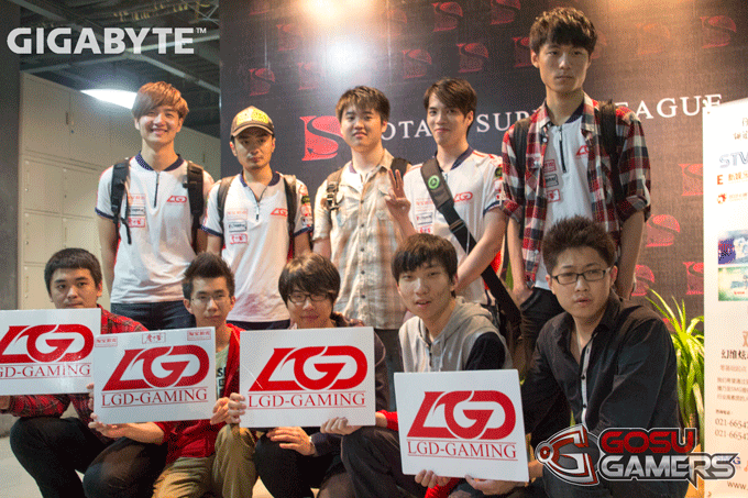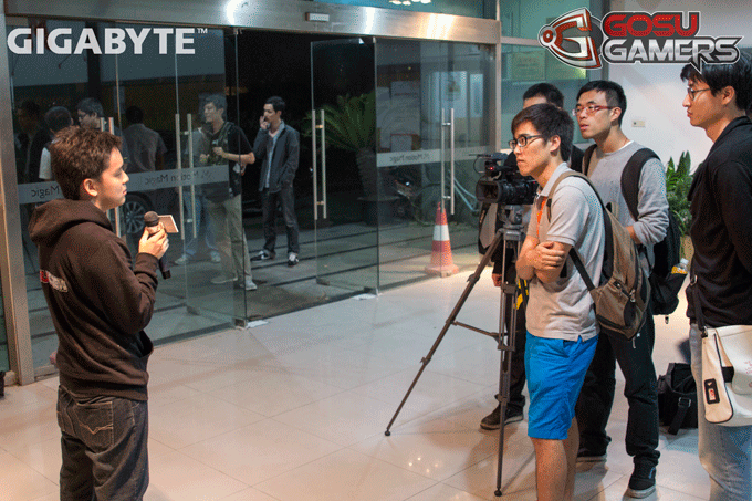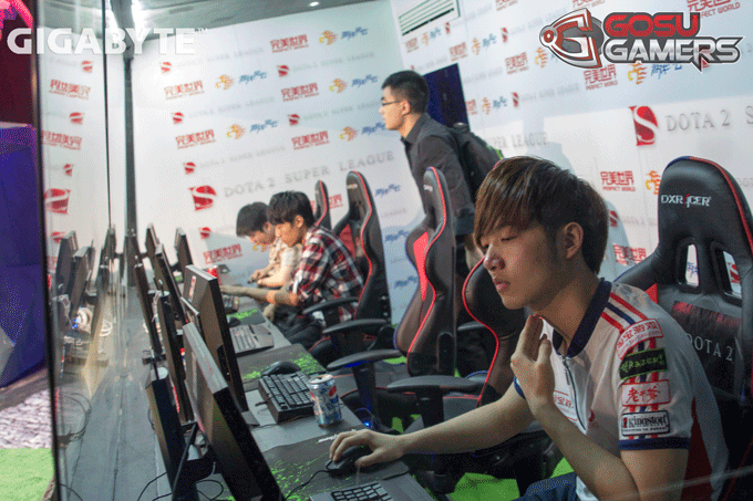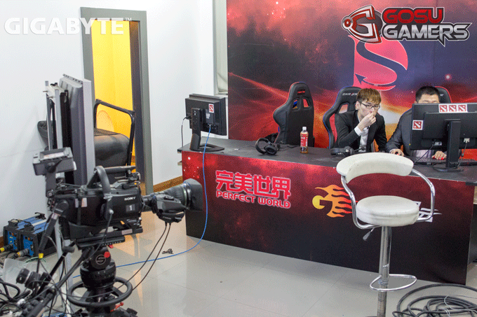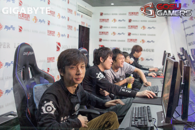 One hour before the game started, the players started pouring into the studio. First, they set-up their gears in the respective player booths before walking into the spectator area to chill. The atmosphere in the studio was not like anything I have ever seen before. The players were all very relaxed and talked smack to each other a lot. It was fun to see. At one point, Nic (LGD manager) pulled out a bunch of LGD posters and ChuaN held it above his head and claimed he would shout "LGD LGD LGD" if LGD were to win 2-0 against them (LGD won 2-0). All jokes obviously.