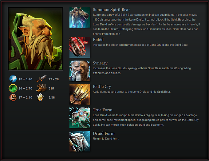 Prior to the 6.78 patch, Lone Druid was used extensively as an off-lane solo, mostly because of how tanky the Spirit Bear is and its ability to disrupt the creep wave equilibrium and split push. When 6.78 patch rolled in last month, we've seen fewer teams picking him due to the Armlet nerf, but he's still a very viable pick to go against the Outworld Devourer.