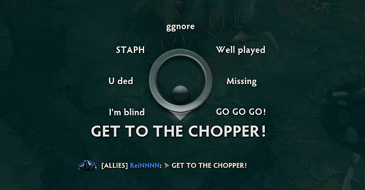 This is where Valve's genius idea of the useless chatwheel comes into use. With an auto-translate function and a selection of up to eight commands to choose from including "Stun now!", "Get back!", and "Missing", your favourite allstars are sure to have no problems pulling off the worst initiations you have ever seen. To top it off, the chatwheel could even be customized to swear at sub-par teammates for playing well.