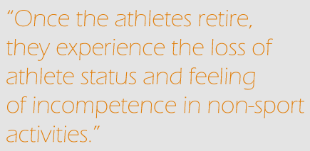 "Once the athletes retire, they experience unexpected adjustment challenges including: missing the social aspect of the sport, work or study pressures, the loss of athlete status and feeling of incompetence in non-sport activities," Sinclair and Orlick (1993) concluded after interviewing 199 retired athletes in Canada.