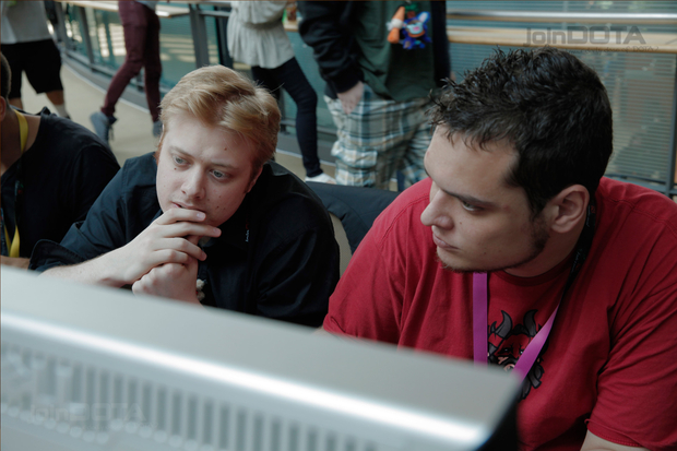 Danidem (right) with TobiWan (left) at The International 2013. Image Courtesy of JoinDota