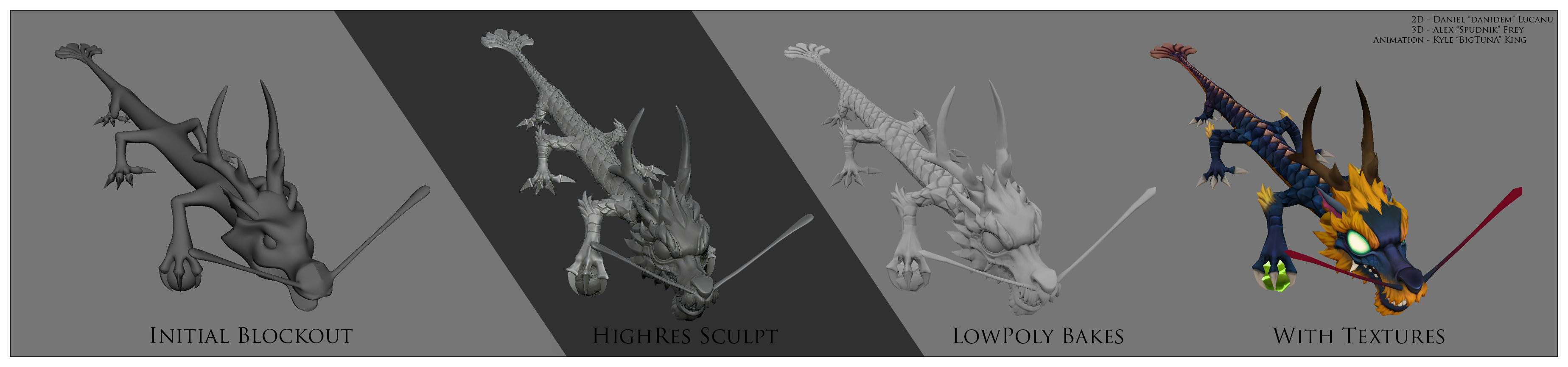 Everything starts on a research on what fits better for the Nexon Invitational Supermatch. They really wanted to make something that represented Korea, Nexon gave me greenlight about what to do (this is the best way to work and Nexon knew this) and after some thinking I suggested doing a Korean dragon. From this point, everything is a research and documentation work about how