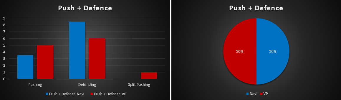 Navi had a clear intention of taking big team fights while increasing lockdown abilities whereas VP focused less on disables and more on healing.