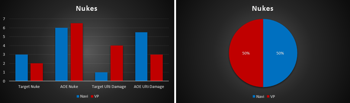 Overall nuking abilities were equal and both the teams had good nuke damage to burst down a single target.