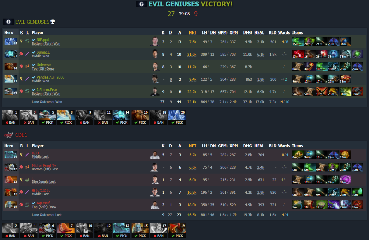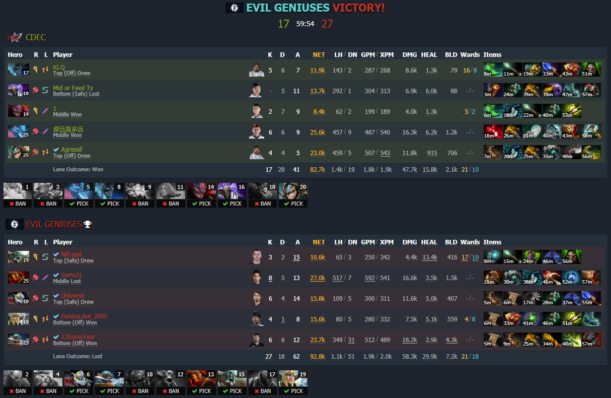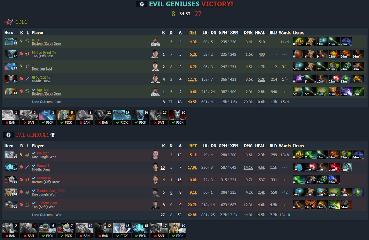 Game 1 (CDEC Radiant with first pick, EG Dire)
