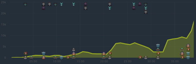 The GPMs for the two teams weren’t two far apart, and the average GPMs were higher than the previous Tis, indicating farming was getting higher priority. The addition of Bounty Runes helped in raising the GPMs, even though back then, a Bounty Rune provided gold and experience only to the hero that picked it up.