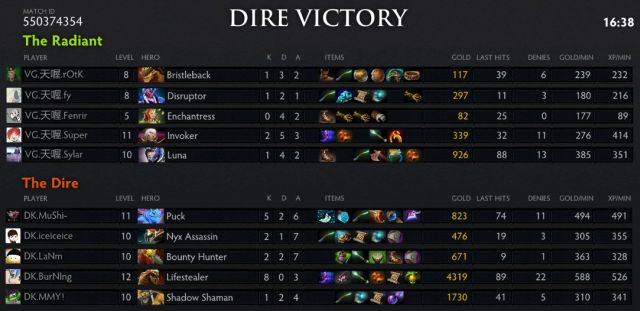 Yet another gank in the jungle resulted in a 3-1 trade off going DK's way, and with a 12,000 gold and experience deficit, Vici Gaming were forced to call the gg at 16:30.