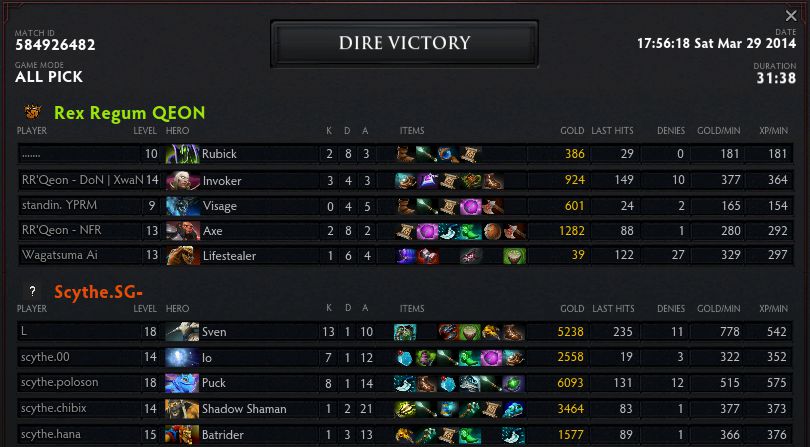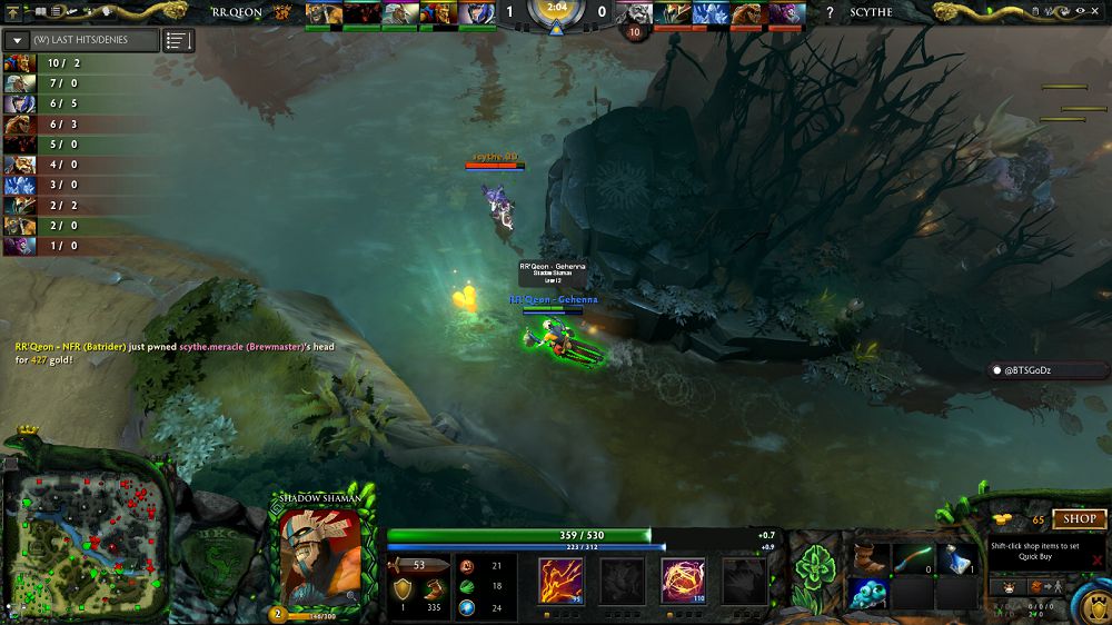 With Chen in the hands of RRQ, Scythe decided to contest the lanes on the early stages. They placed a dual lane of Lifestealer and Ancient Apparition to try shut down the enemy Shadow Fiend, and they sent a Nyx and a Dazzle on the bottom lane to try slow down the farm of the Shadow Shaman-guarded Luna. RRQ's advantage it the top lane match-up, on which they have a Batrider going one-on-one against a Brewmaster. It was RRQ who drew the early advantage as Batrider got a solo kill on his lane and Shadow Shaman getting a solo kill on Dazzle with the help of an illusion rune.