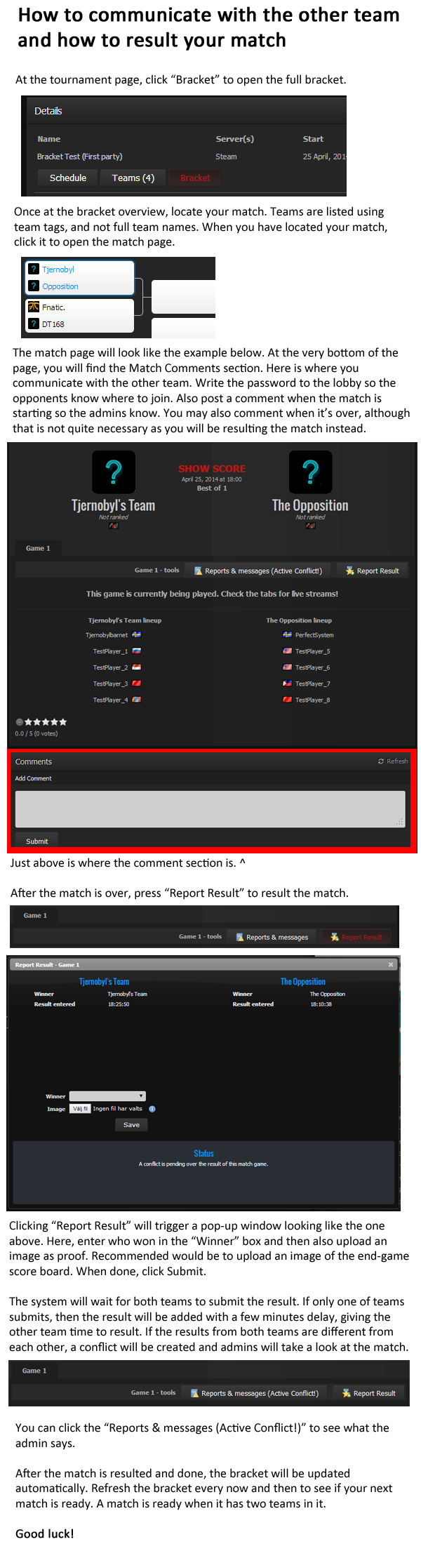 If you are one of the participants, kindly follow this guide on how to communicate with your opponents and result your respective games. Have fun and may the odds be in your favour!