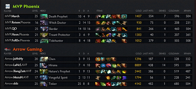 While Arrow was the heavy favorite heading into this match-up, MVP certainly did not make it easy for them. The Malaysian team had a strong showing in the first game behind a sneaky Roshan kill, but the Korean team showed their strong play that boosted them into this upper bracket finals.