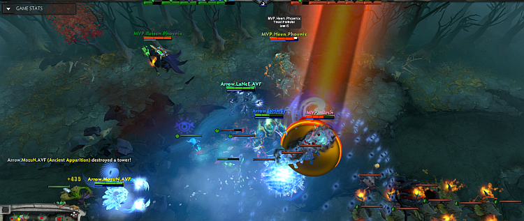 Arrow Gaming had big break early, claiming Roshan and taking first blood even before the first creep wave. Arrow Gaming went for a push-strat with Chen, Tinker and Nature’s Prophet while MVP chose Death Prophet which was also good for pushing and pressuring towers. While Arrow put the pressure on towers, the Korean team was showing strong team fight with their big AoE skills. The Malaysian team secured a tower lead, while their enemy had a hero-kill lead.