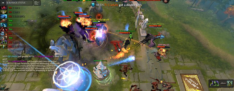 That proved to be the pivotal mark, as MVP suddenly found themselves winning the ensuing fights. MiTH tried several times, but their attempts were always interrupted. Defending the Koreans' base were long range skills by Jakiro and Rubick, while a blinking Tidehunter with a blade mail deals massive damage to the fragile Krobelus.
