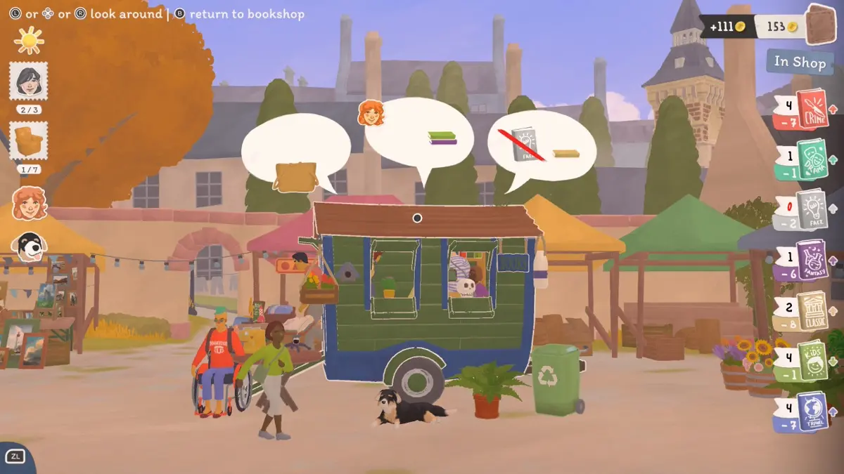 Where they choose to sell books is up to them. Every day presents new opportunities for the player, with Bookstonbury playing host to a variety of different locations to try setting up shop in. From the beach to the local art market, it never felt like the game was limiting me to just one location, as plenty more areas could be uncovered as the story progressed. That’s a good thing too, as each location can introduce specific reading preferences, and new customers for the player to befriend.