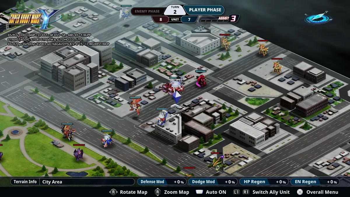 Super Robot Wars Y is a tactical strategy game, placing players in grid-based battlefields where they can move units around to prepare future attacks and take enemies down. Combat and gameplay is deceptively complex here, but the main idea is that you want to focus on positioning and defense to come out of big battles unscathed. Players get to play a turn before their enemies, but both sides have ample time and units to make big moves during their respective turns.