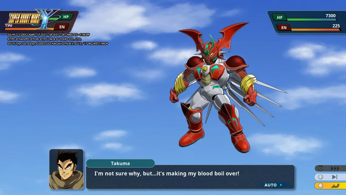 It’s borderline incomprehensible stuff, largely because the plot feels like the work of someone gleefully mashing their childhood toys together. There is no graceful way to have Gundam and Kamen Rider characters fight Godzilla, but watching the game try to weave all of these characters together in what comes across as high-concept fan fiction is almost endearing.
