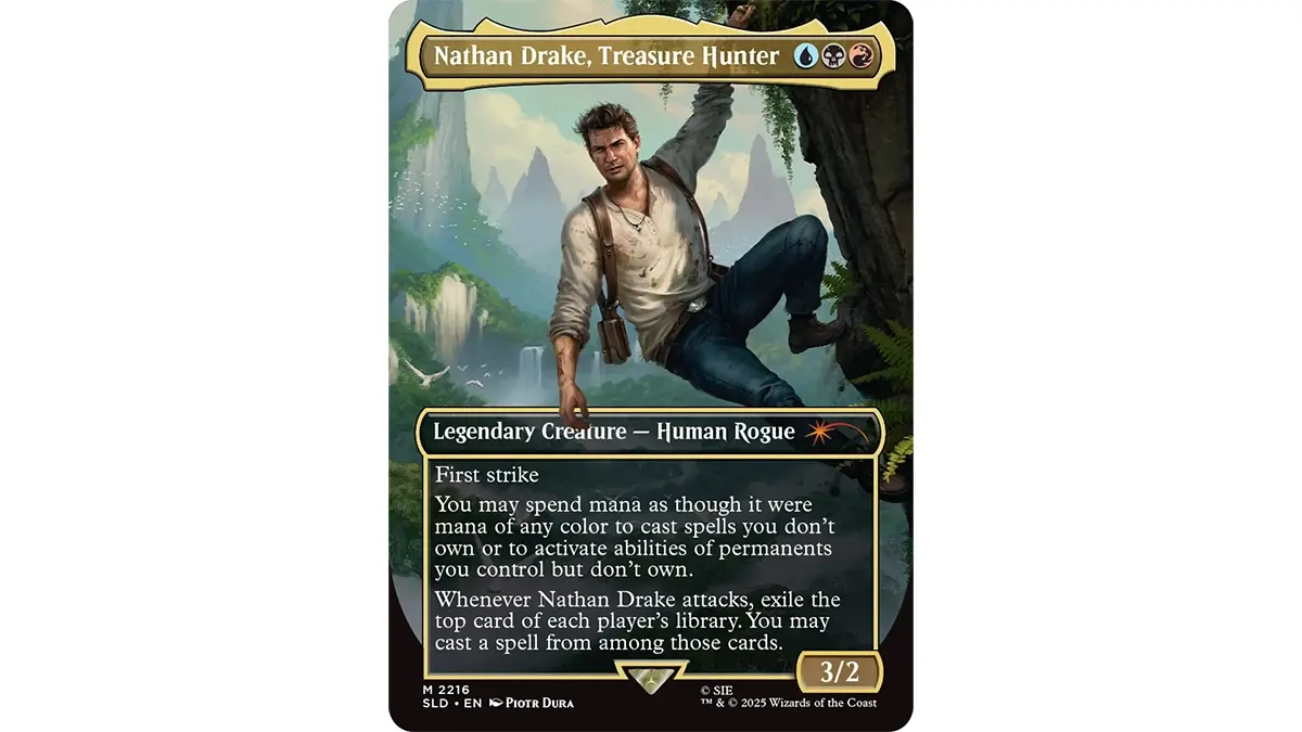 Magic: The Gathering is technically dropping three Secret Lair x Naughty Dog packs, with the third being based on Uncharted. Only one card from this pack has been revealed, starring Nathan Drake himself, the Treasure Hunter.