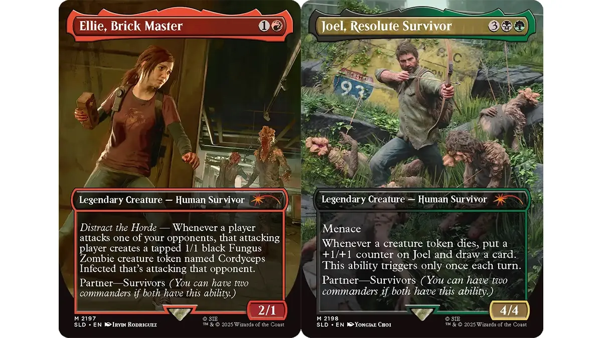 Naughty Dog’s The Last of Us Part I is getting a Secret Lair collab. This collab features the cards Joel, Resolute Survivor and Ellie, Brick Master. The latter title is a fun nod to Ellie referring to herself as the “Brick Master” in The Last of Us’ expansion Left Behind, after beating Riley in a game of brick-throwing.