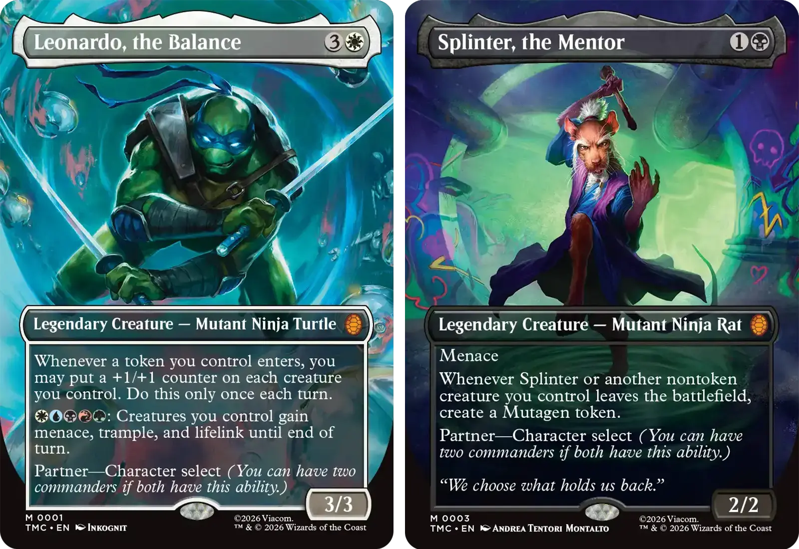 The Partner mechanic also makes a comeback, and players can pair any of the turtles revealed so far with Partner—Character to have two Commanders helm their decks instead.