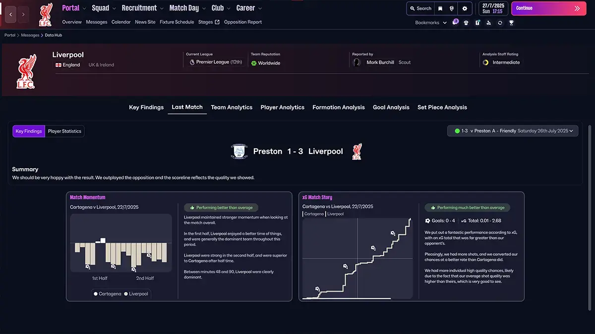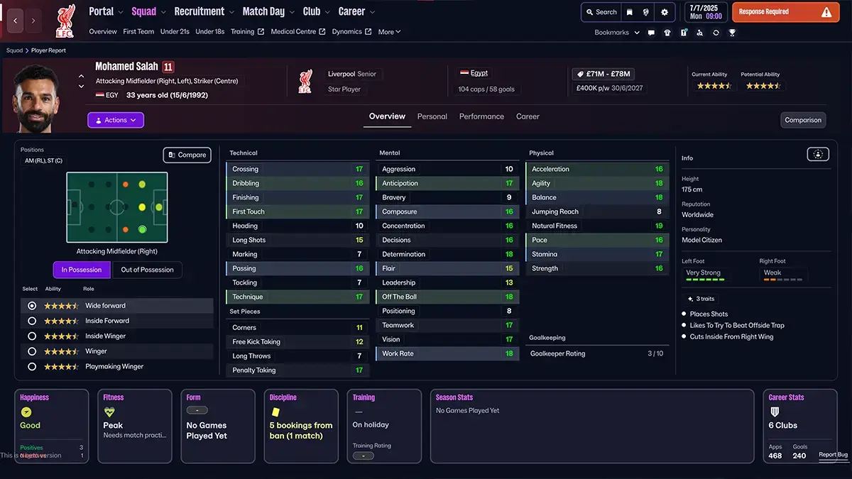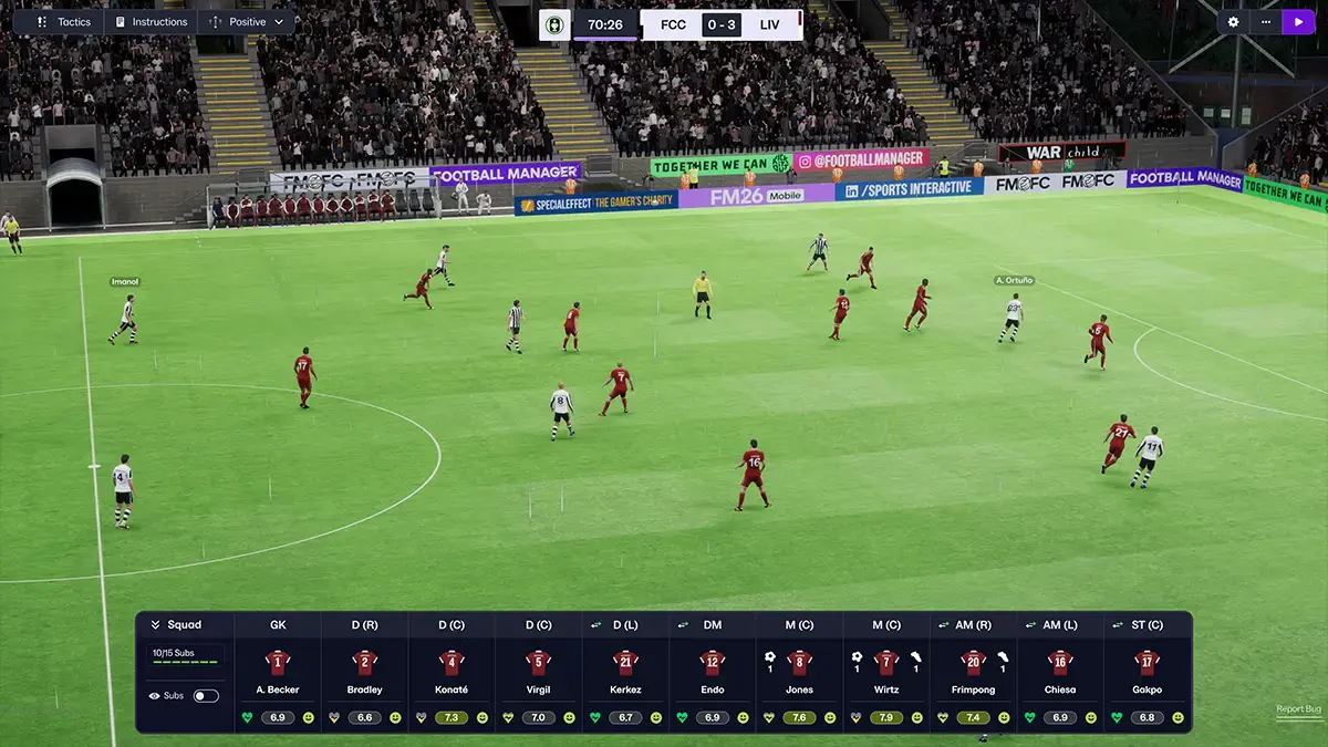 You can, for example, click on Mohamed Salah’s profile on Football Manager 26, and view his smiling face right next to his stats. However, the licences seem to end there, because if you go to a match day and manage a Liverpool game, you will not be able to recognise him on the pitch as the player model on the pitch does not resemble him at all. It seems like Football Manager still has some long ways to go before it can achieve an EA FC level of player likeness.