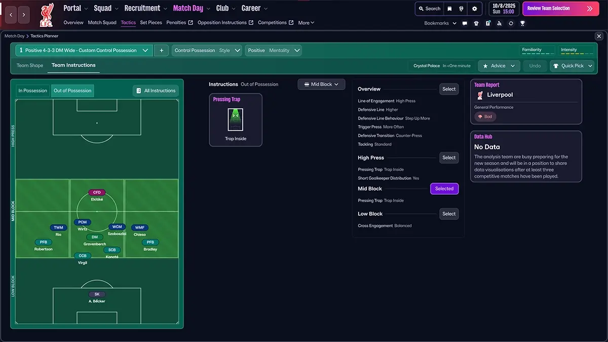 Outside of the multiple issues with the user interface and the switch to Unity engine, Football Manager 26 now also introduces out of possession tactics, and that is (finally) a huge win for the franchise.
