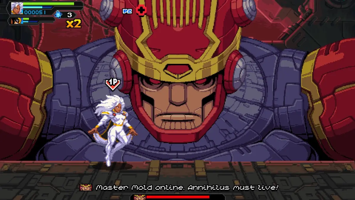 While Annihilus does shine as the game’s leading antagonist (voiced by Matthew Mercer, no less), this story is packaged as an arcade campaign first and foremost. That means players only get very brief cinematics with statically-animated superheroes before each level starts up. These exposition dumps are written as cheesily as possible, in an ostensible callback to beat-’em-ups of yore like Streets of Rage or even X-Men: Mutant Apocalypse.
