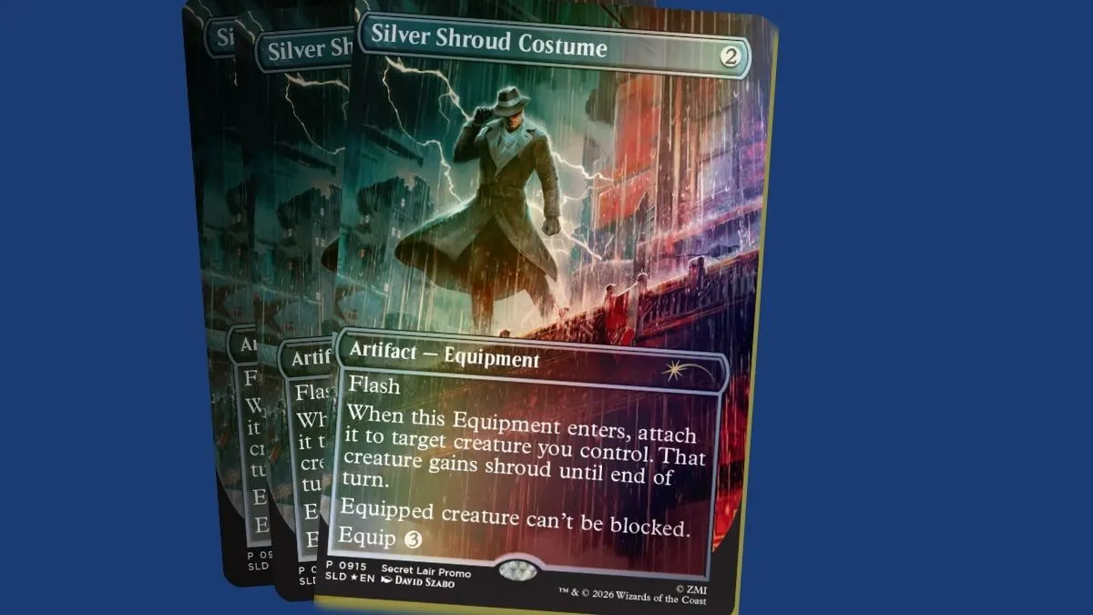 As with previous Superdrops, there’s also a limited promo up for grabs. For every US$149 USD spent, players will receive a foil Secret Lair x Fallout Silver Shroud Costume promo card, while supplies last. Orders over US$99 USD ship free, though Wizards stress that items are only secured once checkout is completed.