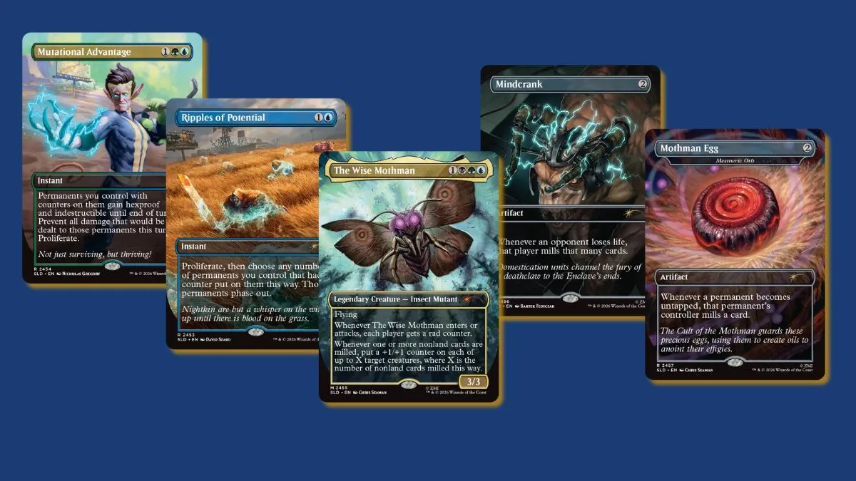 Announced on 15 January, 2026, the Rad Superdrop brings together four Fallout-themed Secret Lair drops, each inspired by a different slice of the Fallout universe. From Vault-Tec propaganda vibes to New Vegas excess, this Superdrop leans fully into Fallout’s retro-futuristic identity. The full lineup goes live on 26 January, 2026 via MagicSecretLair.com.