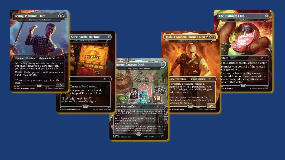 Secret Lair x Fallout: Welcome to New Vegas rounds out the Superdrop with a heavy dose of Mojave flair, featuring characters and items closely tied to Fallout: New Vegas.
