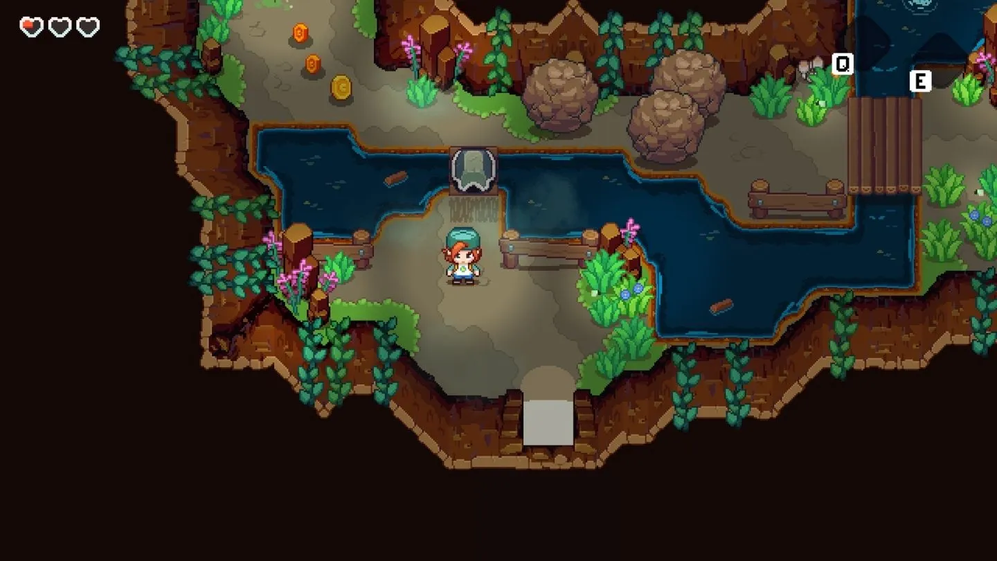 Using your hockey stick, you can clear bushes and collect scattered coins across the map. This currency can be used to purchase items like bombs, and upgrades to your wallet size, allowing you to carry more coins.