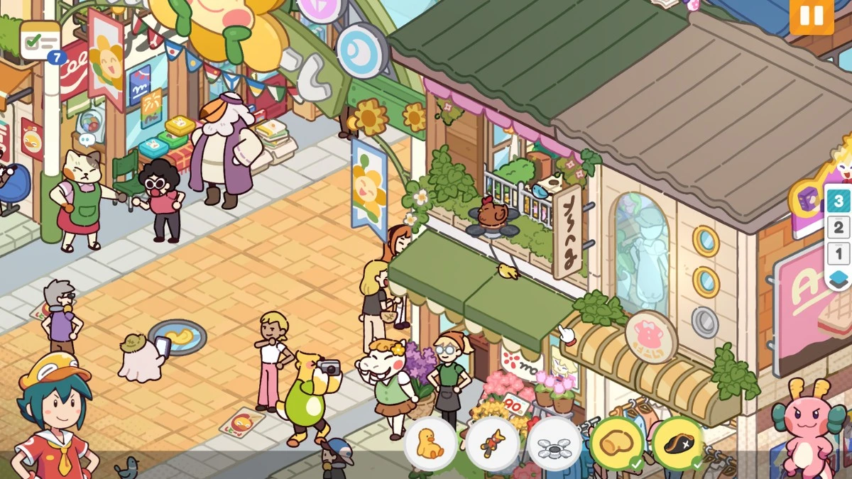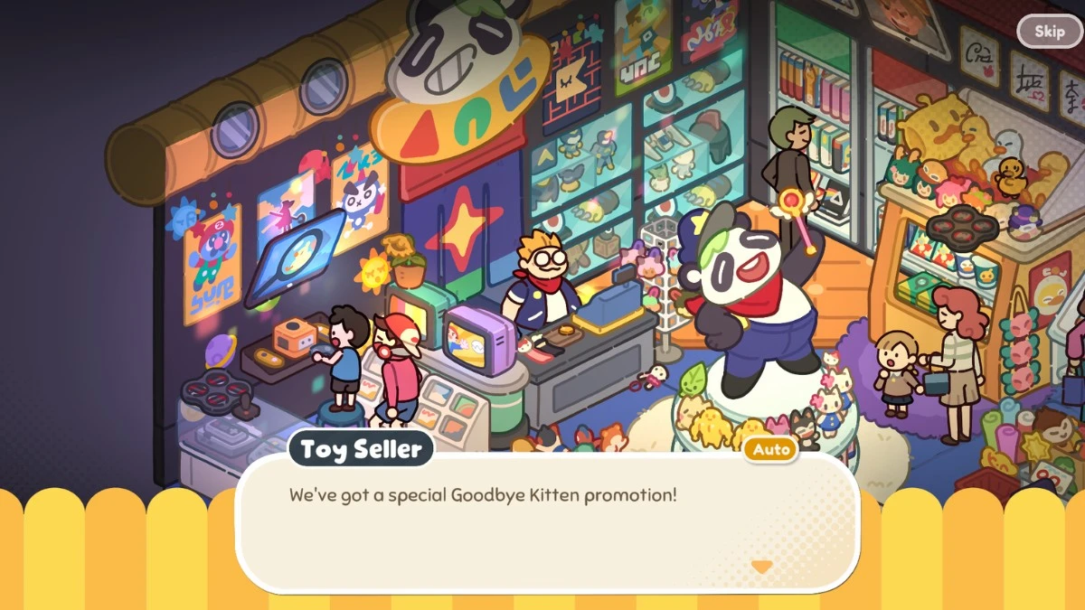 The key is layout. Instead of randomly scattering props across the screen, the environments feel curated. There’s logic to how objects are placed. A convenience store looks like a messy minimart mid-shift, rather than a jumble of unrelated items. A record shop doesn’t just contain vinyl records; click on one and you’ll hear a quick tune. Customers for each store have different personalities: a gacha shop will be full of nerdy tropes that are awfully relatable, and A bookstore have some bookworms (literal ones), and customers looking for a fantastical adventure. Small touches like that turn static scenery into something interactive.