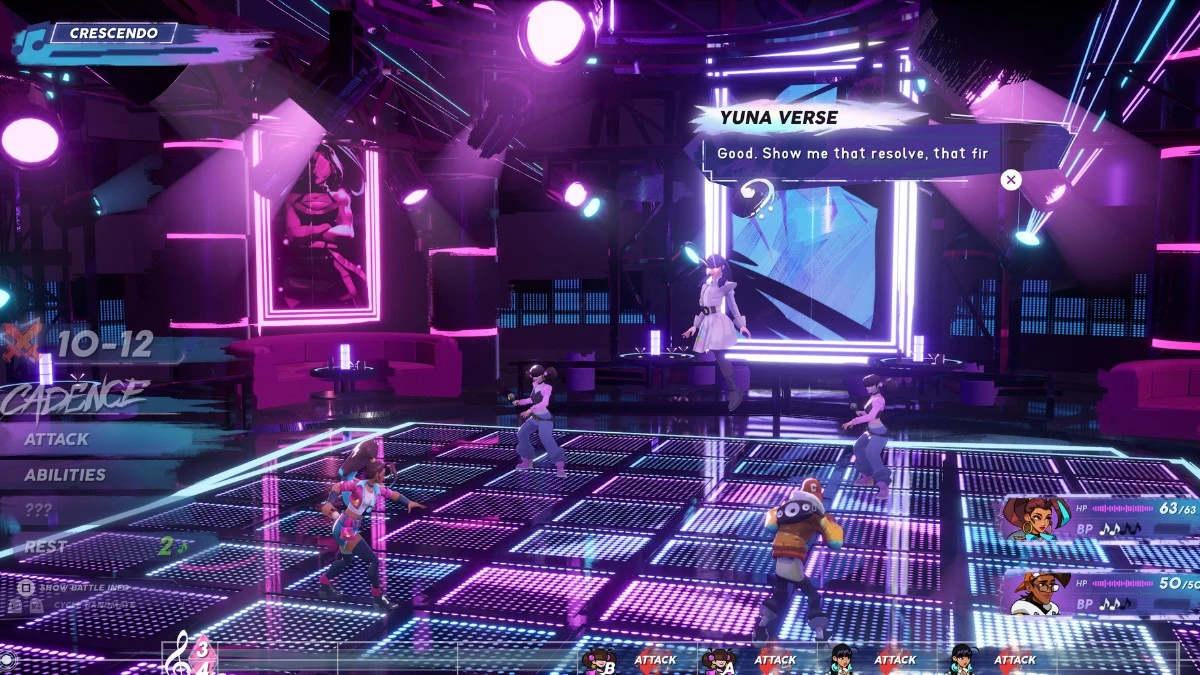 The game makes a big deal out of blending musical genres, but that idea barely comes through in gameplay. When characters like Cadence (Pop) and Fret (Rock) perform a mashup, it feels underwhelming. There’s no real sense of creating a new, combined sound, just a repeated animation and the same chord or tune being played.