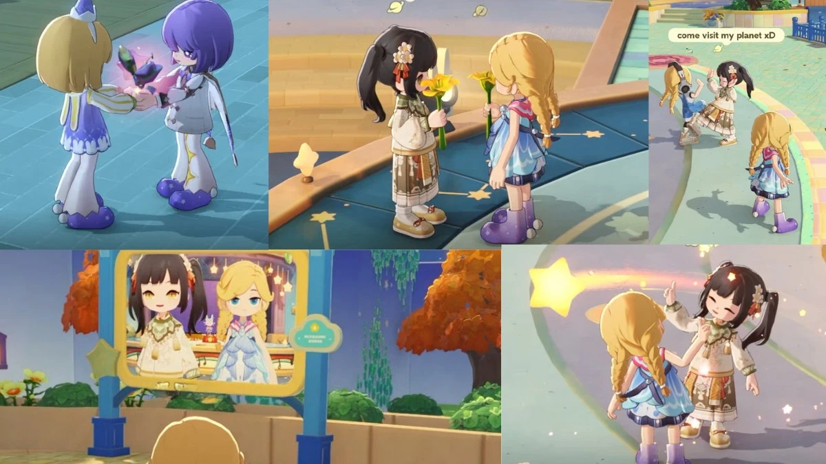 Visiting other planets helps you get inspiration. There are smaller interactions too, gifting items, taking photos together, dancing together, holding hands, creating a train together, playing mini-games together and more. That said, some interactions are buggy at this stage. Gifting sometimes doesn’t work, or accepting other multiplayer activities can be inconsistent too.