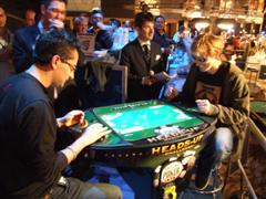 The first two rounds were played on Tuesday, cutting the field to 32 players. Some interesting first round matches included Tom Dwan defeating close friend Peter Jetten, Daniel Negreanu defeating Alex Kostritsyn, Isaac Haxton defeating Robert Mizrachi and Jason Mercier losing to Gus Hansen. Uber-hot high-roller Erik Seidel fell to Dani Stern in Round 1 when his A,K couldn't beat Stern's Q,10.