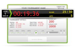 Once downloaded to your PC, Laptop, or smart-phone, the free software will allow you to choose the blind structure and the length of the levels. The software takes it from there with a full easy to use display of the pertinent information. Many modifications allow you to to increase or decrease the remaining time in any level; skip a level entirely; and pause the tournament at any point.