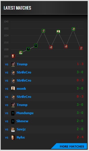 As for his tournament performances, Gnimsh has shown to be a man of extremes, either sweeping and getting swept by his opponent. This can be seen clearly by his results at ESGN's multiple seasons of Fight Night. He took out Trump, StrifeCro (twice), and monk 3-0. Funnily enough, aside from monk it was the same people who demolished the Pole. This makes him look like a coin flip when looking at how he will fare, although results shouldn't be the only basis.