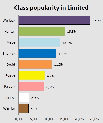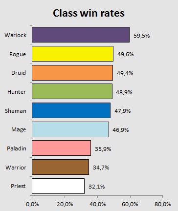 Looking at the win rates, Warlock is again on the top, leading with 59,5% as the only class with performance above the 50%. Zoo too strong? It appears so.