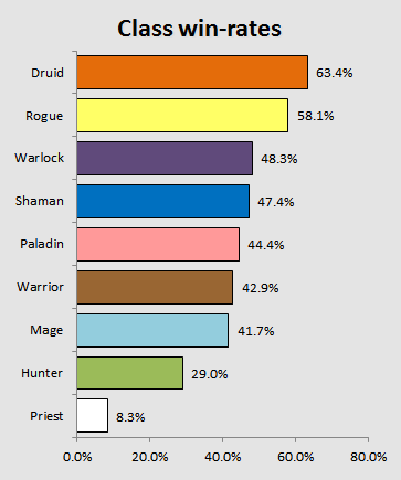 Druid was the top class in both categories in both cycles, so they are also sitting at the spot in the sun for the overall stats of the entire season. No surprise there, nothing more to add about this, moving on.