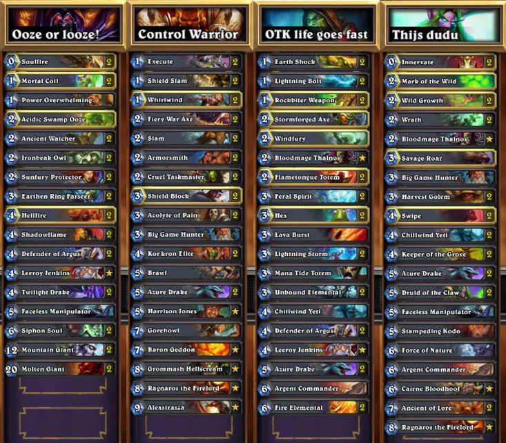 GosuCup #12 champion really came prepared this time. After having some rough starts in previous cup, E3k brought a total of five decks, ranging from the good old face Hunter to the slow-paced Handlock.