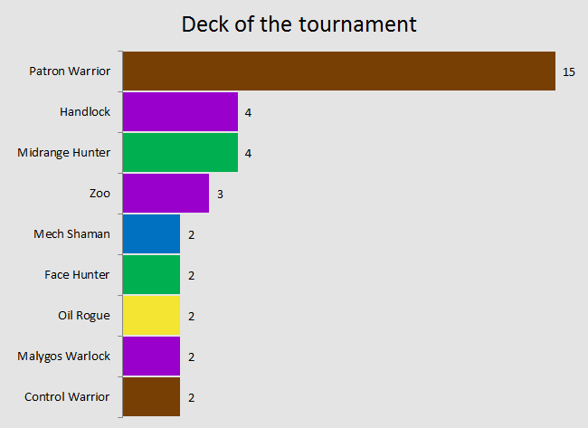 I really hoped that the graph on the left here would be different but I didn’t have huge expectations. Almost unanimously, players and crew members consider Patron Warrior to be the deck of the tournament, and since we talked about that at length already, let’s move on to the more interesting part.
